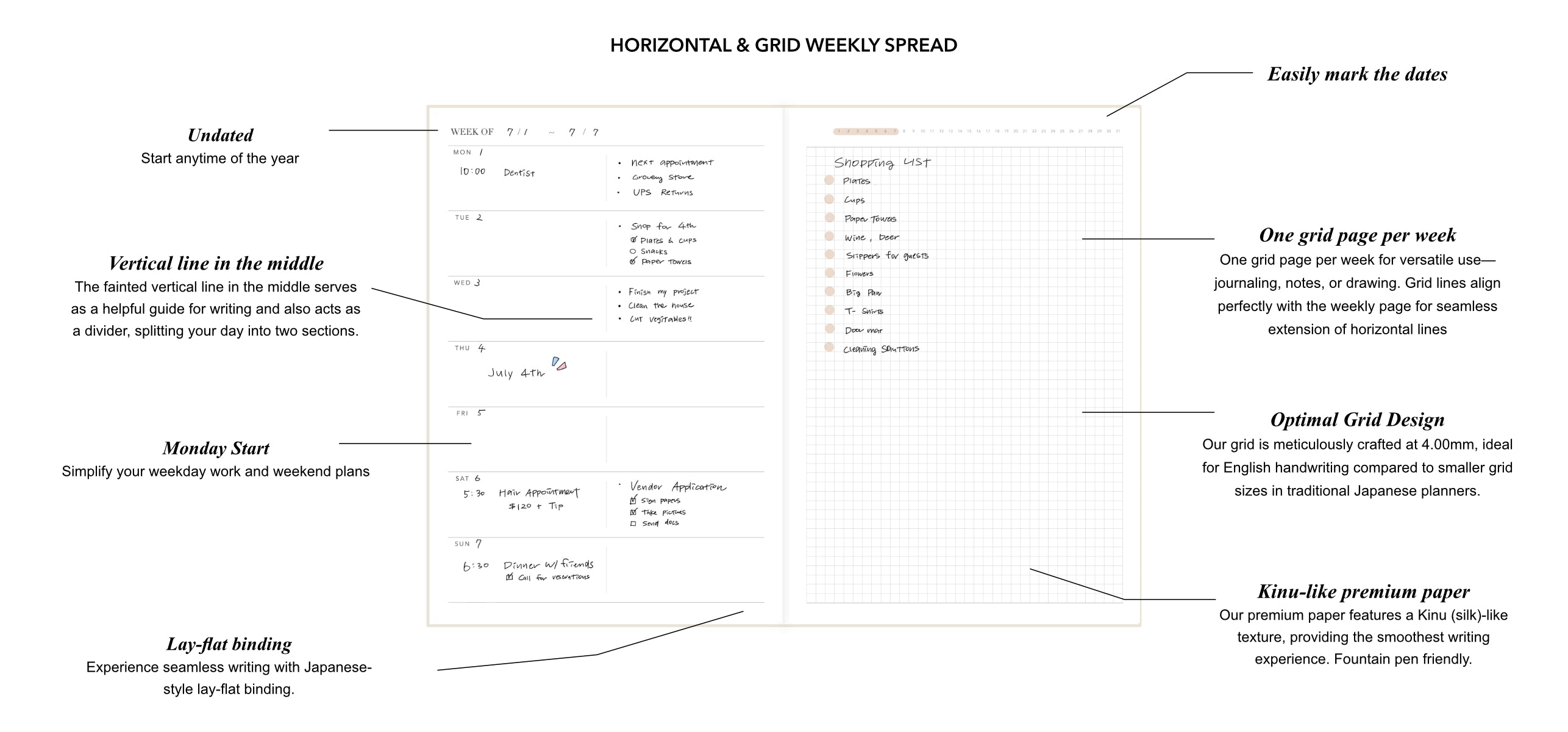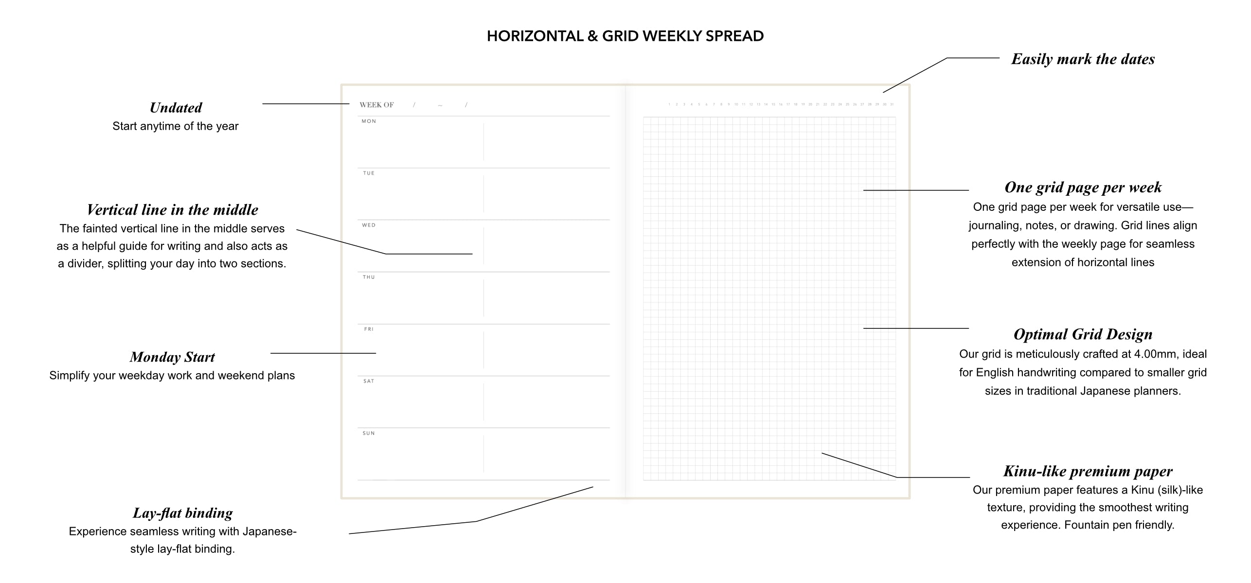 Undated Weekly Planner - Horizontal Grid